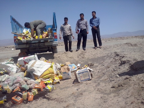 قریب به دو تن ماده غذایی که چند روز قبل از شرکت تعاونی روستایی مزینان کشف و ضبط شده بود ، صبح امروز معدوم گردید .